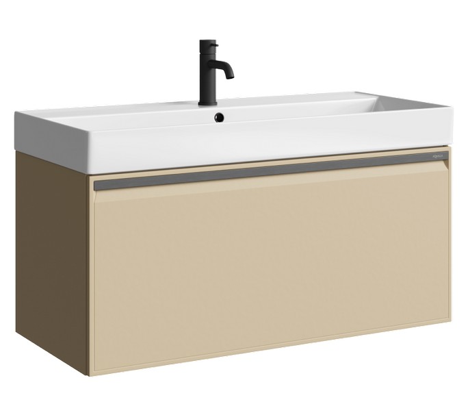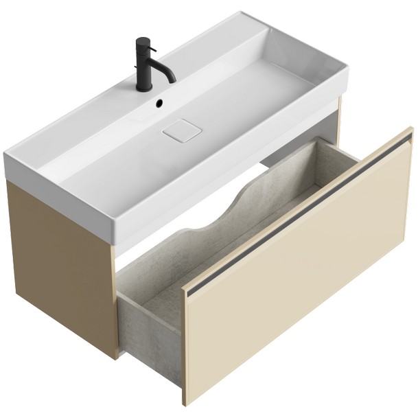 Описание: Подвесная тумба Аквелла Pure 100 с керамическим умывальником – строгая геометрия линий, чистота форм и минималистичная ручка. Фасадные и боковые части мебели изготовлены из влагостойкого MDF окрашенные в матовый бежевый цвет. Ящик оснащен системой полного выдвижения и плавного закрывания. Отделка внутренних элементов мебели особым цветом под бетон. |