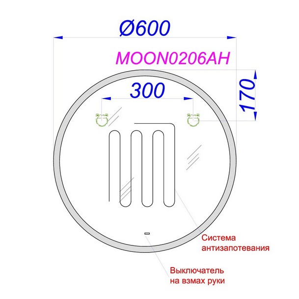 Описание: Зеркало со светодиодной подсветкой (4000К), сенсорным выключателем, регулятором освещенности и обогревом |