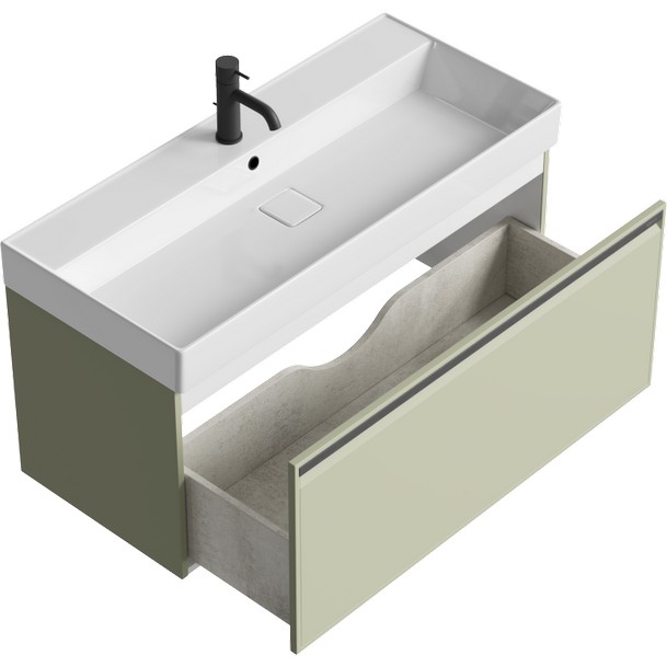 Описание: Подвесная тумба Аквелла Pure 100 с керамическим умывальником – строгая геометрия линий, чистота форм и минималистичная ручка. Фасадные и боковые части мебели изготовлены из влагостойкого MDF окрашенные в матовый зеленый цвет. Ящик оснащен системой полного выдвижения и плавного закрывания. Отделка внутренних элементов мебели особым цветом под бетон. |
