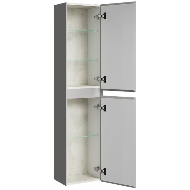 Описание: Фасады и боковины с обработкой торцов под углом 45 градусов создают лаконичность и изящный, почти монолитный силуэт в закрытом состоянии. Все грани имеют округлую фрезеровку, обеспечивая приятные тактильные ощущения при открывании. Фасадные и боковые части мебели изготовлены из влагостойкого MDF окрашенные в матовый цвет. Дверцы оснащены петлями плавного закрывания. Внутри отделка под светлый камень. Колонна доступна в пяти современных нейтральных оттенках и легко впишется в любой интерьер. |