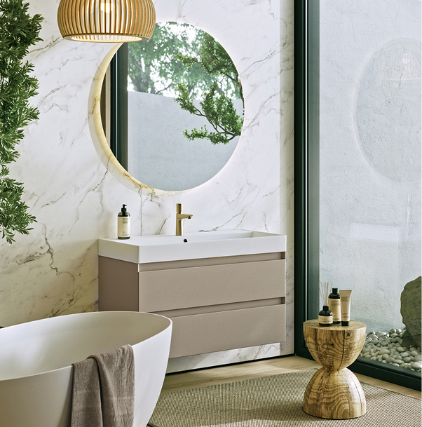 Описание: Подвесная тумба Аквелла Geometria 65 с керамическим умывальником – строгая геометрия линий и точностью в каждом элементе. Фасады и боковины с обработкой торцов под углом 45 градусов создают лаконичность и изящный, почти монолитный силуэт в закрытом состоянии. Все грани имеют округлую фрезеровку, обеспечивая приятные тактильные ощущения при открывании. Фасадные и боковые части мебели изготовлены из влагостойкого MDF окрашенные в матовый цвет. Ящики оснащен системой полного выдвижения и плавного закрывания. Внутри ящиков – отделка под светлый камень, боковины выполнены из толстого тонированного стекла, что добавляет коллекции элегантности. Тумба доступна в пяти современных нейтральных оттенках и легко впишется в любой интерьер. |