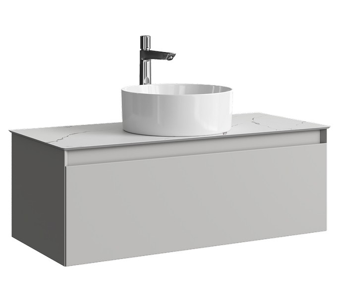 Описание: Подвесная тумба Аквелла Geometria 100 со столешницей из керамогранита и керамическим умывальником – строгая геометрия линий и точностью в каждом элементе. Фасады и боковины с обработкой торцов под углом 45 градусов создают лаконичность и изящный, почти монолитный силуэт в закрытом состоянии. Все грани имеют округлую фрезеровку, обеспечивая приятные тактильные ощущения при открывании. Фасадные и боковые части мебели изготовлены из влагостойкого MDF окрашенные в матовый цвет. Ящики оснащен системой полного выдвижения и плавного закрывания. Внутри ящиков – отделка под светлый камень, боковины выполнены из толстого тонированного стекла, что добавляет коллекции элегантности. Тумба доступна в пяти современных нейтральных оттенках и легко впишется в любой интерьер. |