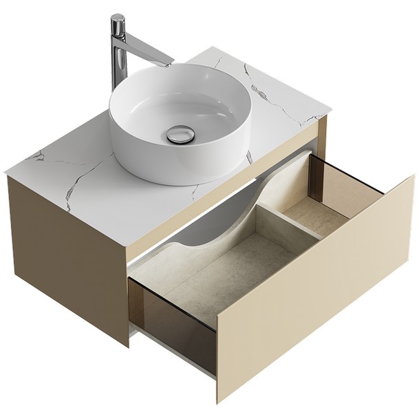 Описание: Подвесная тумба Аквелла Geometria 80 со столешницей из керамогранита и керамическим умывальником – строгая геометрия линий и точностью в каждом элементе. Фасады и боковины с обработкой торцов под углом 45 градусов создают лаконичность и изящный, почти монолитный силуэт в закрытом состоянии. Все грани имеют округлую фрезеровку, обеспечивая приятные тактильные ощущения при открывании. Фасадные и боковые части мебели изготовлены из влагостойкого MDF окрашенные в матовый цвет. Ящики оснащен системой полного выдвижения и плавного закрывания. Внутри ящиков – отделка под светлый камень, боковины выполнены из толстого тонированного стекла, что добавляет коллекции элегантности. Тумба доступна в пяти современных нейтральных оттенках и легко впишется в любой интерьер. |