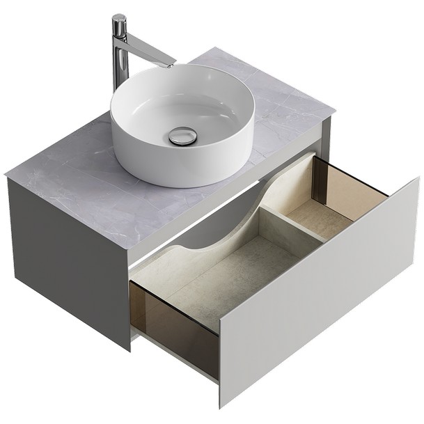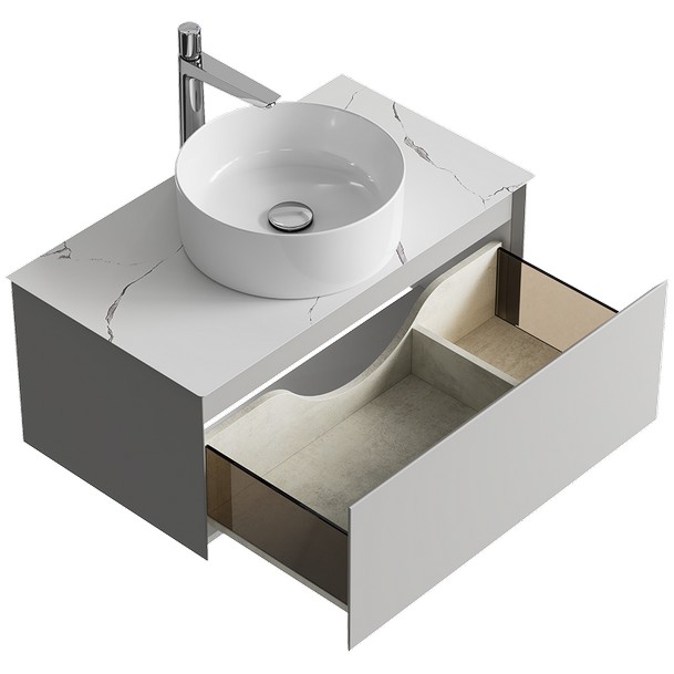 Описание: Подвесная тумба Аквелла Geometria 80 со столешницей из керамогранита и керамическим умывальником – строгая геометрия линий и точностью в каждом элементе. Фасады и боковины с обработкой торцов под углом 45 градусов создают лаконичность и изящный, почти монолитный силуэт в закрытом состоянии. Все грани имеют округлую фрезеровку, обеспечивая приятные тактильные ощущения при открывании. Фасадные и боковые части мебели изготовлены из влагостойкого MDF окрашенные в матовый цвет. Ящики оснащен системой полного выдвижения и плавного закрывания. Внутри ящиков – отделка под светлый камень, боковины выполнены из толстого тонированного стекла, что добавляет коллекции элегантности. Тумба доступна в пяти современных нейтральных оттенках и легко впишется в любой интерьер. |