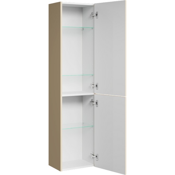 Описание: Универсальный (правый/левый) подвесной пенал. Фасадные и боковые части мебели изготовлены из влагостойкого MDF окрашенные в матовый бежевый цвет. Дверцы оснащены петлями плавного закрывания. Отделка внутренних элементов мебели особым цветом под бетон. |