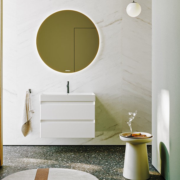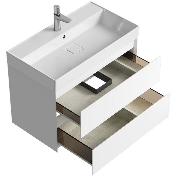 Описание: Подвесная тумба Аквелла Geometria 80 с керамическим умывальником – строгая геометрия линий и точностью в каждом элементе. Фасады и боковины с обработкой торцов под углом 45 градусов создают лаконичность и изящный, почти монолитный силуэт в закрытом состоянии. Все грани имеют округлую фрезеровку, обеспечивая приятные тактильные ощущения при открывании. Фасадные и боковые части мебели изготовлены из влагостойкого MDF окрашенные в матовый цвет. Ящики оснащен системой полного выдвижения и плавного закрывания. Внутри ящиков – отделка под светлый камень, боковины выполнены из толстого тонированного стекла, что добавляет коллекции элегантности. Тумба доступна в пяти современных нейтральных оттенках и легко впишется в любой интерьер. |