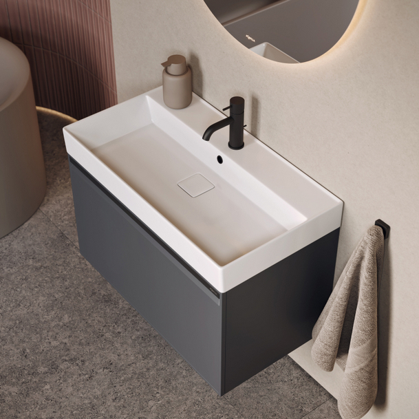 Описание: Подвесная тумба Аквелла Pure 100 с керамическим умывальником – строгая геометрия линий, чистота форм и минималистичная ручка. Фасадные и боковые части мебели изготовлены из влагостойкого MDF окрашенные в матовый серый цвет. Ящик оснащен системой полного выдвижения и плавного закрывания. Отделка внутренних элементов мебели особым цветом под бетон. |