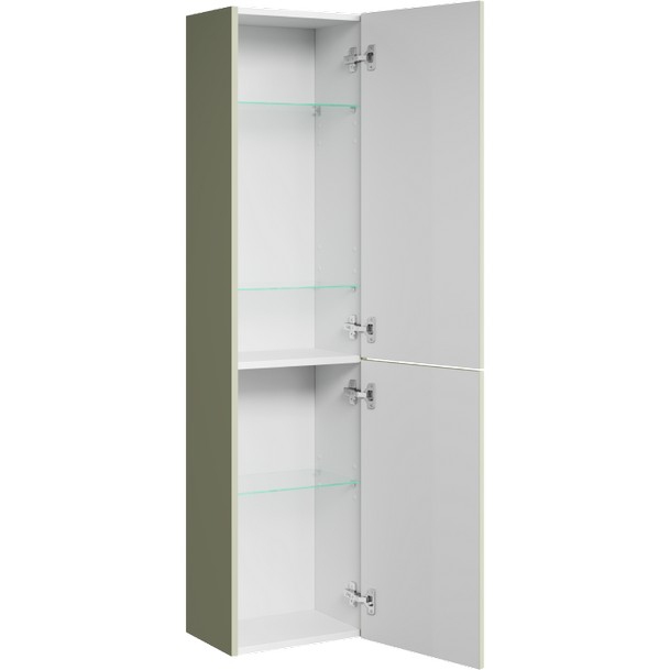 Описание: Универсальный (правый/левый) подвесной пенал. Фасадные и боковые части мебели изготовлены из влагостойкого MDF окрашенные в матовый зеленый цвет. Дверцы оснащены петлями плавного закрывания. Отделка внутренних элементов мебели особым цветом под бетон. |