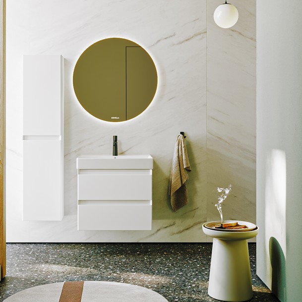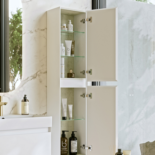 Описание: Фасады и боковины с обработкой торцов под углом 45 градусов создают лаконичность и изящный, почти монолитный силуэт в закрытом состоянии. Все грани имеют округлую фрезеровку, обеспечивая приятные тактильные ощущения при открывании. Фасадные и боковые части мебели изготовлены из влагостойкого MDF окрашенные в матовый цвет. Дверцы оснащены петлями плавного закрывания. Внутри отделка под светлый камень. Колонна доступна в пяти современных нейтральных оттенках и легко впишется в любой интерьер. |