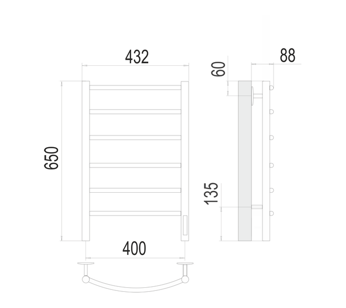 Описание: Полотенцесушитель с сухим пожаробезопасным тэном. Данный прибор может быть установлен в любом помещении без опастности замерзания. Внутри полотенцесушителя установлен сухой евротэн (патент Терминус), который быстро прогревает всю повехность изделия. Регулировка осуществляется при помощи терморегулятора вмонтированного в прибор. Расход электроэнергии минимален (соответствует мощности обычной лампы накаливания). Температура нагрева от 30 до 70 градусов С. Четыре температурных режима. Универсальный способ подключения(с помощью кабеля или скрытое подключение). Возможна покраска любого полотенцесушителя в цвет по каталогу RAL, а также в цвет латунь, бронза и золото (порошковое полимерное покрытие является самым долговечным и износостойким видом окрашивания, порошковая краска наносится на металл с применением электрического тока и под действием высоких температур и связывается с ним на молекулярном уровне). Технические характеристики: Форма: лесенка 6 равноудаленных перекладин; Тип управления: sensor quick touch; Теплоотдача: 117Вт; Потребляемая мощность: 85Вт; Тип теплоносителя: Сухой (ЕвроТЭН); Материал: нержавеющая сталь AISI 304L. Комплектация: комплект скрытого и наружнего подключения, телескопические держатели к стене, паспорт изделия. |