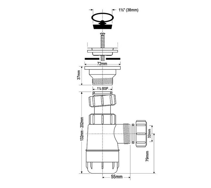 Описание: Сифон McAlpine 1 1/4 дюйма x 32 мм, MRW2L Сифон McAlpine бутылочный 1"1/4 х 32 мм с выпуском 60 мм нержавеющая решетка с пробкой компрессионный выход D=32 мм предназначен для отвода воды из раковины или умывальника в канализацию. Выполняется из полипропилена и имеет белый цвет. Для подключения используется диаметр Ø32 мм с обоих сторон. Высота гидрозатвора составляет 50 мм. Пропускная способность сифона – 31 л/мин. В комплект поставки входит сифон в сборе, решетка из нержавеющей стали для монтажа на раковине и пробка с кольцом. |