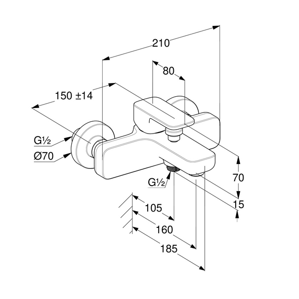 Описание: Однорычажный смеситель для ванны и душа, настенного монтажа: • литой рычаг; • аэратор М24х1; • ванна: расход воды 20 л/мин при давлении 3 бара; • душ: расход воды 18 л/мин при давлении 3 бара; • керамический картриджс ограничителем горячей воды • автоматический переключатель душ/ванна; • клапан защиты от обратного потока; • отвод для душа G1/2; • эксцентрики G1/2xG3/4. |