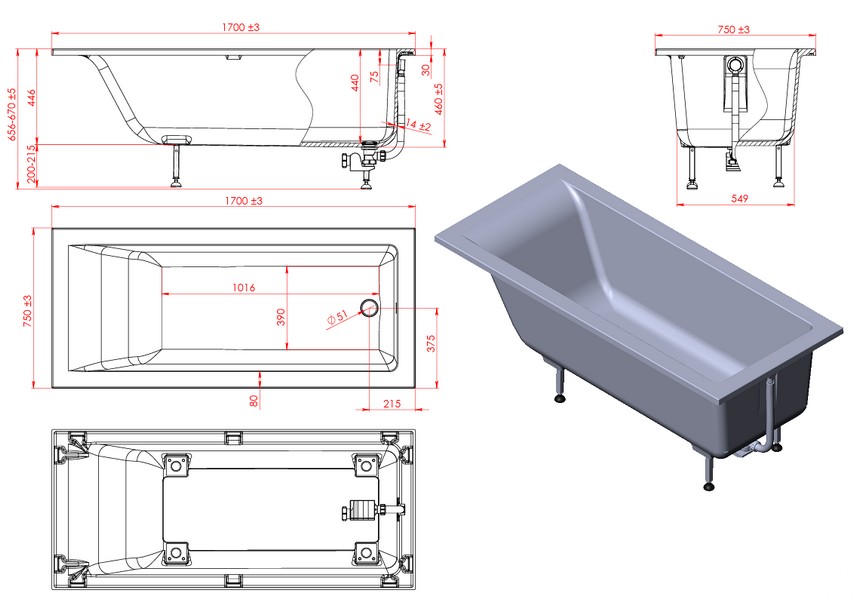 Описание: Хорошо сохраняют тепло, высокое шумопоглащение, отсутствие вибрации, легки в эксплуатации. Размер: 1700х750х660 с допуском по Д/Ш/В ±3 мм; Глубина: 440 мм; Толщина стенок: 14 ±2мм; Масса: 89 кг; Объем: 235 л Изделие поставляется смонтированым на регулируемых ножках и щелевым переливом. Возможно изготовить цветную ванну в 16 базовых цветах (+20% к стоимости белой), в индвидуальном цвете по RAL (+32% к стоимости белой). |